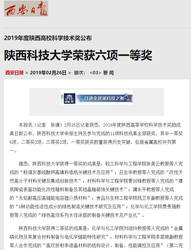 近日,《西安日報》刊發(fā)文章,就我校在2019年度陜西高等學??茖W技術獎勵成果中榮獲六項一等獎一事進行了報道。