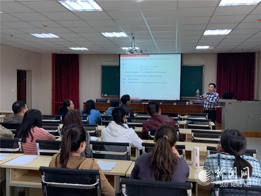 3月15日下午,應(yīng)文理學院邀請,東華大學陶有山教授作客我?!拔囱雽熣搲保诶砜茦俏睦韺W院做了題為“Toward chemotactic cross-diffusion models(趨化交叉擴散模型)”的學術(shù)報告。報告會由文理學院院長藺小林教授主持,數(shù)學系部分教師和研究生聆聽了陶教授的報告。