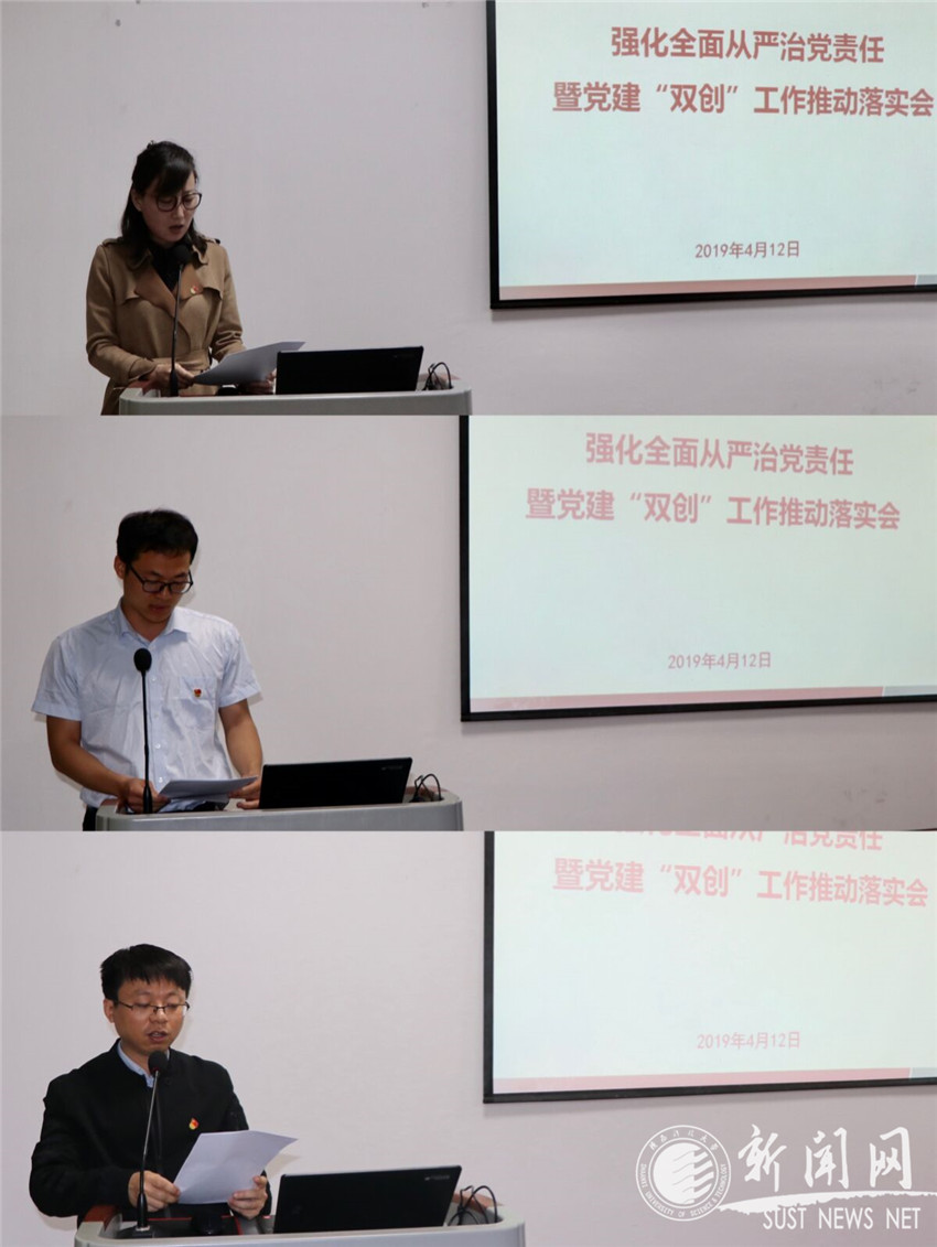 訾榮祿說,強化全面從嚴治黨主體責(zé)任,推動“雙創(chuàng)”工作向縱深發(fā)展,一是要圍繞政治建設(shè)抓落實。要以政治建設(shè)為統(tǒng)領(lǐng),真正把政治標(biāo)準作為干部推薦、黨員發(fā)展、人才引進、師德評價的首要標(biāo)準。班子成員要按照常態(tài)化、長效化的要求,扎實開展“講政治、敢擔(dān)當(dāng)、改作風(fēng)”專題教育。要主動落實“師德建設(shè)強化年”工作,深入學(xué)習(xí)貫徹習(xí)近平總書記在全國思政會、全國教育大會和學(xué)校思政課教師座談會上的重要講話精神,以實際行動樹牢“四個意識”、堅定“四個自信”、做到“兩個維護”,落實好立德樹人根本任務(wù)。二是要圍繞“雙創(chuàng)”工作抓落實。要按照教育部黨組、省委教育工委和校黨委有關(guān)要求,對照“五個到位”的指標(biāo)體系,結(jié)合巡察整改扎實開展“雙創(chuàng)”工作,要將“雙創(chuàng)”的過程真正成為加強政治建設(shè)的過程,解決問題的過程,提高質(zhì)量的過程、完善機制的過程,推動發(fā)展的過程。三是要圍繞巡察整改抓落實。要認真學(xué)習(xí)領(lǐng)會巡察反饋意見,真認領(lǐng)、真整改、真落實,主動認領(lǐng)任務(wù),認真抓好整改落實工作,確保各項整改任務(wù)落實到位。四是要圍繞中心任務(wù)抓落實。要充分發(fā)揮學(xué)院黨委政治核心作用和中堅力量的作用,把落實全面從嚴治黨主體責(zé)任、推進“雙創(chuàng)”和巡察整改工作成效最終體現(xiàn)在食品博士點申報、第五輪學(xué)科評估、人才工作突破、兩個專業(yè)認證、實驗室配調(diào)等重要領(lǐng)域改革、推進“年年都是服務(wù)年”、加強思想政治與意識形態(tài)工作、夯實安全穩(wěn)定責(zé)任等中心工作和重點任務(wù)的落實上,體現(xiàn)在復(fù)興計劃目標(biāo)任務(wù)的落實上。五是要圍繞落實抓落實。抓落實必須有一種扭住不放、一抓到底的韌勁。學(xué)院黨委建立的教工和學(xué)生黨員積分實施辦法就是將積分體現(xiàn)在黨員日常發(fā)揮作用上,日常工作落實上,要讓黨員帶頭落實,要讓帶頭落實的黨員得到認可;建立重點工作臺賬管理。抓落實,書記、院長要帶頭示范、班子成員要主動作為,黨員同志要模范執(zhí)行、全體師生要積極參與。