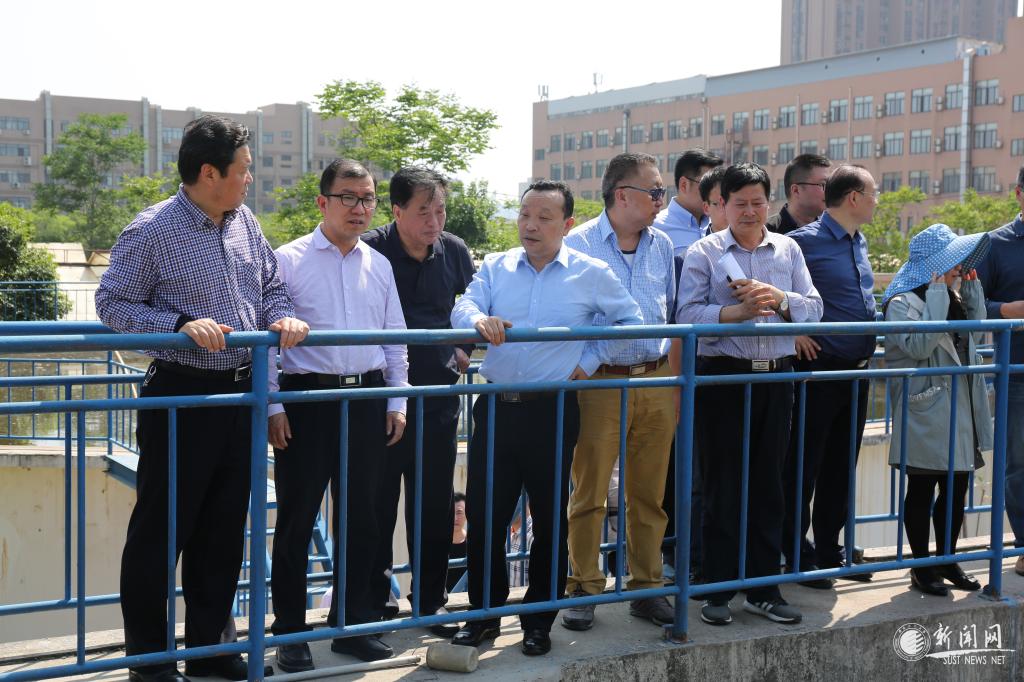 檢查組一行先后來到我校人工湖、泵房、校園污水處理中心、學(xué)生浴室等地檢查水環(huán)境及用水情況。