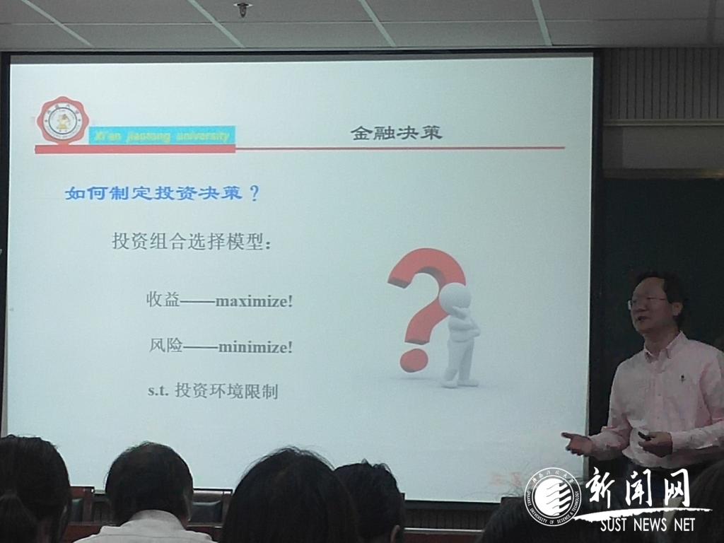 陳教授從數(shù)理金融概論、金融信息處理、金融決策和科研興趣與理論四個(gè)方面介紹了報(bào)告的內(nèi)容。陳教授利用數(shù)學(xué)工具研究金融問題,進(jìn)行數(shù)學(xué)建模和理論分析,對(duì)收集到的大量金融數(shù)據(jù)發(fā)現(xiàn)規(guī)律、進(jìn)行預(yù)測(cè)和制定投資決策。在數(shù)學(xué)上給出了穩(wěn)定分布的特征函數(shù),構(gòu)造了具有非線性非對(duì)稱的收益預(yù)測(cè)函數(shù),考慮收益受何種因素的影響及其多個(gè)證券收益間的關(guān)系,建立了風(fēng)險(xiǎn)最小收益最大情況下的投資組合選擇模型,闡述現(xiàn)代數(shù)學(xué)與計(jì)算技術(shù)在金融領(lǐng)域中的應(yīng)用。