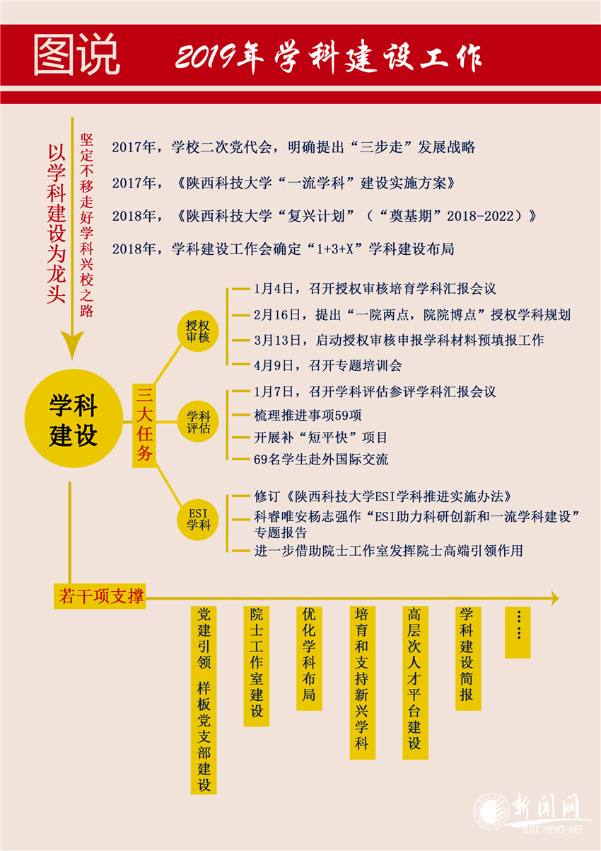去年,第四輪學(xué)科評(píng)估結(jié)果公布后,學(xué)校召開全校學(xué)科建設(shè)工作會(huì)議,確定了“1+3+X”的學(xué)科建設(shè)布局,明確了第五輪學(xué)科評(píng)估、學(xué)位授權(quán)審核申報(bào)、ESI學(xué)科提升計(jì)劃三大學(xué)科建設(shè)核心任務(wù)。圍繞三大核心工作,學(xué)校投入學(xué)科建設(shè)經(jīng)費(fèi)2400萬,按照“固優(yōu)、強(qiáng)特、扶需、重基、創(chuàng)新”的建設(shè)思路,重點(diǎn)支持優(yōu)勢(shì)、特色學(xué)科沖擊第五輪學(xué)科評(píng)估和博士學(xué)位授權(quán)申報(bào)。學(xué)科辦先后出臺(tái)了《陜西科技大學(xué)學(xué)科與研究生教育標(biāo)志性成果及項(xiàng)目獎(jiǎng)勵(lì)辦法》和《陜西科技大學(xué)ESI學(xué)科推進(jìn)實(shí)施辦法》“雙一流”建設(shè)的重要文件;通過多方調(diào)研論證提出《電氣與信息工程學(xué)院學(xué)科專業(yè)暨學(xué)院調(diào)整初步方案》;成功舉辦15場(chǎng)“院士論壇”、中國(guó)工程院“第六屆食品安全高峰論壇”等高水平學(xué)術(shù)活動(dòng);開展6個(gè)在建院士工作室的考核工作等。