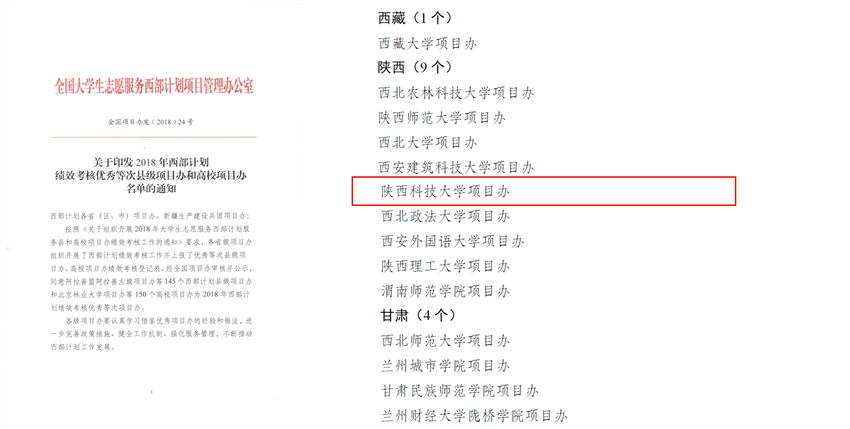近日,全國(guó)大學(xué)生志愿服務(wù)西部計(jì)劃項(xiàng)目辦下發(fā)《關(guān)于印發(fā)2018年西部計(jì)劃績(jī)效考核優(yōu)秀等次縣級(jí)項(xiàng)目辦和高校項(xiàng)目辦名單的通知》,我校榮獲2018年全國(guó)大學(xué)生志愿服務(wù)西部計(jì)劃績(jī)效考核“優(yōu)秀項(xiàng)目辦”稱號(hào)。
