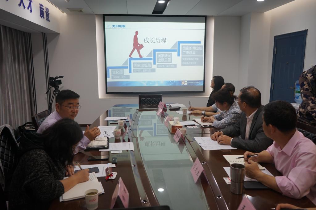 李志健對趙鵬飛一行來我校交流表示熱烈歡迎,他介紹了我?!叭齽?chuàng)兩遷”發(fā)展歷史、“三步走”發(fā)展戰(zhàn)略及近年來“人才工程”等情況。趙鵬飛介紹了中印院的基本情況、重點研發(fā)方向、重點項目。弓太生從學科專業(yè)建設、科學研究、人才培養(yǎng)等方面介紹了輕工學院的基本情況。印刷工程系主任劉國棟介紹了印刷工程系的基本情況。