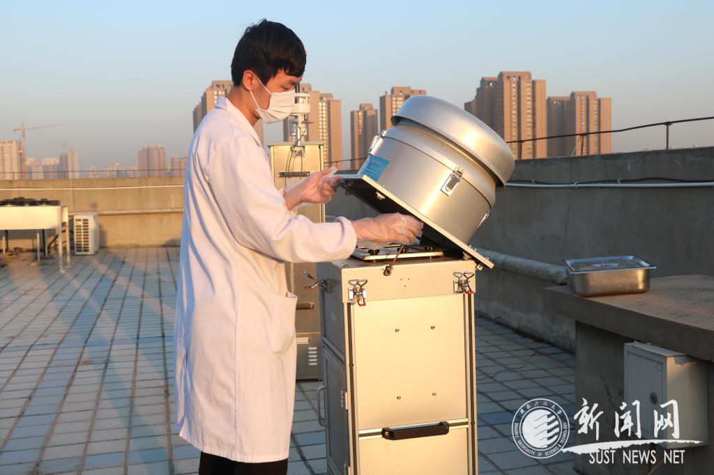 早晨6:30的實(shí)驗(yàn)室,當(dāng)大多數(shù)人還在睡夢(mèng)中時(shí),環(huán)境學(xué)院陳慶彩老師指導(dǎo)的大氣污染與控制研究團(tuán)隊(duì)已經(jīng)開(kāi)始認(rèn)真的工作,迎著初升的朝陽(yáng),牟臻,華曉羽,陳前等研究生站在逸夫樓頂?shù)膶?shí)驗(yàn)儀器前,取樣,收集,整理,記錄,靜靜地忙著手頭的工作。這項(xiàng)研究目前已經(jīng)開(kāi)展了將近三年時(shí)間,為了保證數(shù)據(jù)的連續(xù)性,這項(xiàng)工作一天都不能停止,即便是寒暑假、春節(jié)、大年初一的早晨,他們的工作也依然沒(méi)有停歇過(guò)。