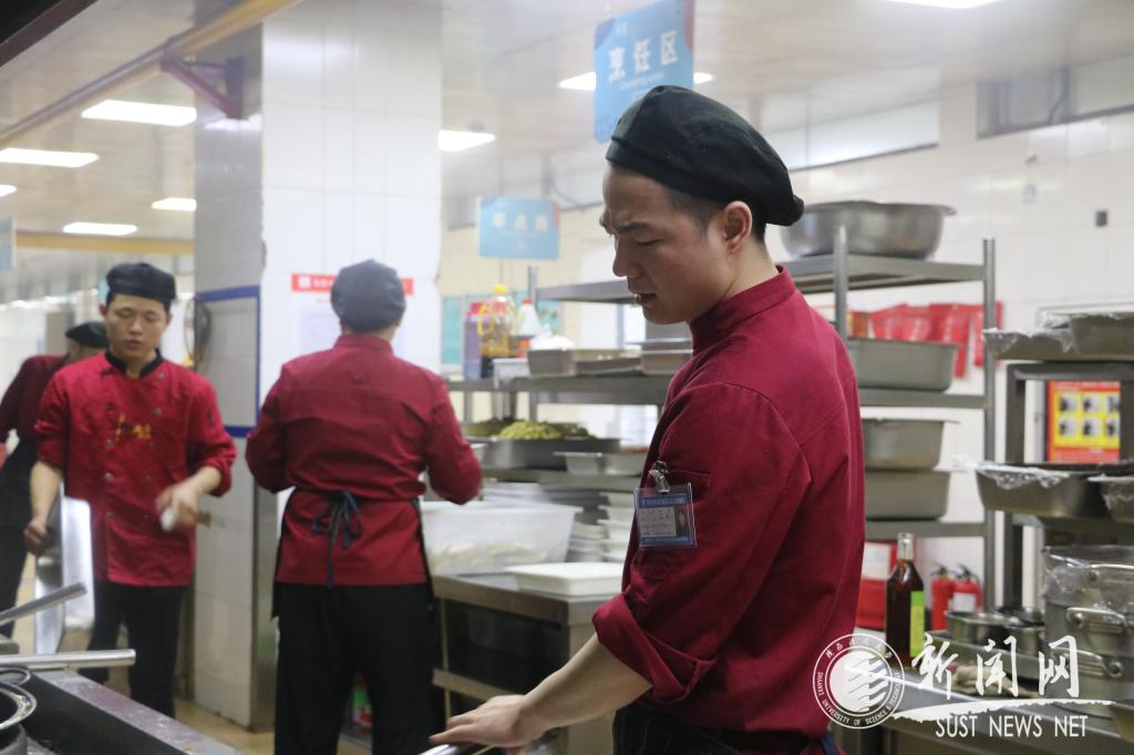 天還沒(méi)有全亮,大多數(shù)學(xué)生沉浸在夢(mèng)鄉(xiāng),餐廳卻早已燈火通明。為了讓學(xué)生們吃上熱氣騰騰的飯菜、擁有良好的用餐環(huán)境,六點(diǎn)多的后廚已是一片忙碌,食堂的工作人員正精心的準(zhǔn)備著一天的早餐。工作人員告訴做餐飲最重要的就是保持原材料的新鮮和口感,不斷的更新菜品,讓學(xué)生們吃到滿(mǎn)意的飯菜。雖然日復(fù)一日的重復(fù)性工作會(huì)有些繁瑣,但他們每天都做的無(wú)比認(rèn)真。炊事員劉洋雖然年輕,卻已經(jīng)在沁園餐廳工作了兩年,他一邊忙著炸制早餐用的食物,一邊笑著說(shuō)“不累,我們?cè)缫呀?jīng)習(xí)慣了”,這聲簡(jiǎn)簡(jiǎn)單單的“習(xí)慣了”,背后卻是汗流浹背的堅(jiān)持,是高溫為了保證學(xué)生吃的健康的責(zé)任感。劉洋是外地人,他一學(xué)期才能回家一次。盡管長(zhǎng)期不能與家人見(jiàn)面,只能與家人視頻通話,但這并不影響他的工作狀態(tài)。每次做菜的時(shí)候,他都會(huì)想這是為自己的親人做的一餐,一定要做好。