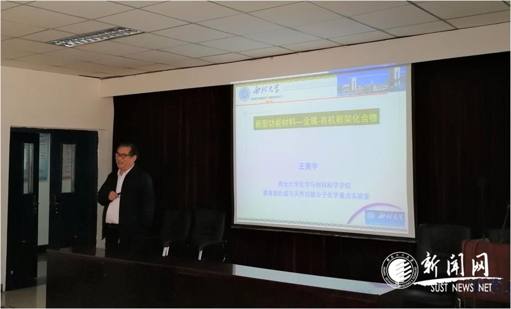 5月10日,受我??萍继幖盎瘜W(xué)與化工學(xué)院邀請,西北大學(xué)王堯宇教授作客我校第七十一期“前沿科學(xué)報(bào)告”,作了題為“新型功能材料——金屬-有機(jī)框架化合物”的學(xué)術(shù)報(bào)告。副校長王學(xué)川出席報(bào)告會,化工、輕工科學(xué)與工程等相關(guān)學(xué)院教師和研究生參加了此次報(bào)告會,會議由化工學(xué)院院長馬養(yǎng)民主持