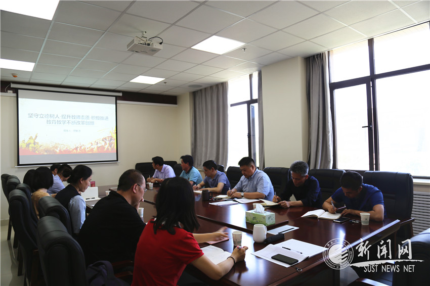 會(huì)議第一階段,院黨委特別邀請(qǐng)陜西省委理論講師團(tuán)特聘教授顏毓?jié)崬閰?huì)同志作了題為“堅(jiān)守立德樹人,提升教師素質(zhì),積極推進(jìn)教育教學(xué)不斷改革創(chuàng)新”的主題報(bào)告。顏教授結(jié)合習(xí)近平總書記在學(xué)校思想政治理論課教師座談會(huì)上的講話,從思政課定位出發(fā)深入分析了教師在立德樹人根本任務(wù)過程中的重要作用,并結(jié)合多年教學(xué)經(jīng)歷,從課程內(nèi)容和設(shè)計(jì)與在場同志探討了專業(yè)課中思政元素切入點(diǎn)的挖掘,他深入淺出的解讀了習(xí)近平總書記對(duì)思政課教師的“六個(gè)要求”、對(duì)思政課“八個(gè)相統(tǒng)一”和對(duì)文化文藝和哲學(xué)社會(huì)科學(xué)工作的“四個(gè)堅(jiān)持”的要求,為在場同志上了生動(dòng)的一堂課。第二階段,院黨委副書記張凱凱帶領(lǐng)全體參會(huì)人員共同學(xué)習(xí)了《習(xí)近平在紀(jì)念五四運(yùn)動(dòng)100周年大會(huì)上的講話》,并結(jié)合學(xué)生工作案例向在場同志作了詳細(xì)解讀。