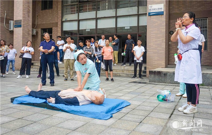 設(shè)備處王京老師向師生講解了滅火毯的正確使用條件和操作方法,保衛(wèi)處工作人員向師生講解了滅火器的原理和正確操作方法,并模擬火災(zāi)現(xiàn)場,指導(dǎo)師生操作滅火器滅火;校醫(yī)院工作人員向師生普及了心肺復(fù)蘇急救知識,進(jìn)行了演示操作,并指導(dǎo)部分師生現(xiàn)場實踐操作。廣大師生在簽名墻上踴躍簽名,表達(dá)對本次疏散演練的支持,紛紛表示受益匪淺,認(rèn)為通過疏散演練、消防知識及急救知識的培訓(xùn),以后在面對突發(fā)火災(zāi)時,一定能夠做到沉著冷靜,科學(xué)避險。