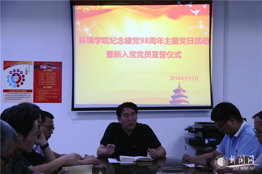 7月1日上午,環(huán)境學院在黨員活動室舉行慶祝建黨98周年主題黨日活動暨新入黨黨員宣誓儀式,學院黨委委員、教工黨支部委員、辦公室黨支部、全體輔導員、新一期預(yù)備黨員和部分入黨積極分子參加活動,活動由學院學生工作負責人趙偉鋒主持。