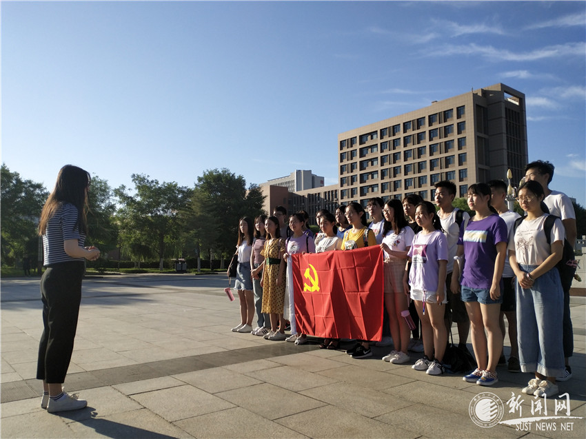 輔導員李丹帶領(lǐng)全體黨員進行入黨宣誓,全體黨員面向黨旗,緊握右拳,飽含激情,莊嚴宣誓。