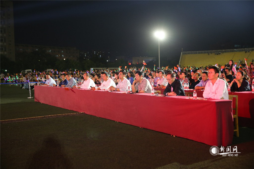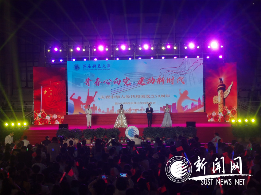 為慶祝中華人民共和國成立70周年暨歡迎陜西科技大學(xué)全體2019級新生,由校團(tuán)委主辦,各學(xué)院團(tuán)委聯(lián)合承辦的主題為“青春心向黨 建功新時代”文藝晚會于9月28日晚在田徑運(yùn)動場舉行。校黨委副書記溫鋒、副校長王學(xué)川、李志健、王海燕、李學(xué)軍,學(xué)校相關(guān)職能部門負(fù)責(zé)人、各學(xué)院學(xué)生工作和共青團(tuán)工作負(fù)責(zé)人與5730余名2019級本科和研究生新生共同觀看了晚會。