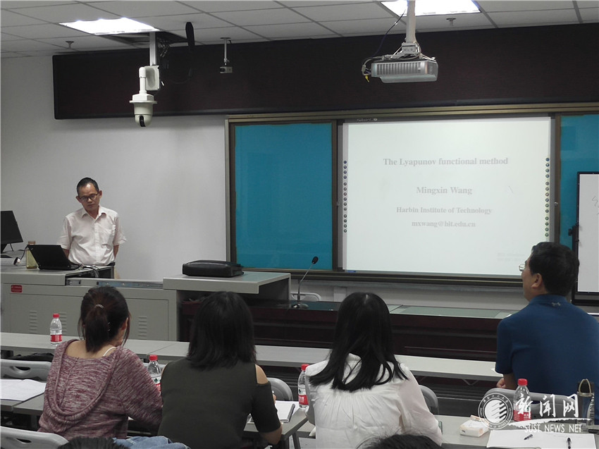 9月29日上午,應(yīng)文理學(xué)院邀請(qǐng),哈爾濱工業(yè)大學(xué)王明新教授作客我?!扒把乜茖W(xué)報(bào)告”,做了題為“The Lyapunov functional method”的學(xué)術(shù)報(bào)告。報(bào)告會(huì)由文理學(xué)院副院長(zhǎng)郭改慧教授主持,文理學(xué)院數(shù)學(xué)系相關(guān)教師及研究生參加了此次報(bào)告會(huì)。