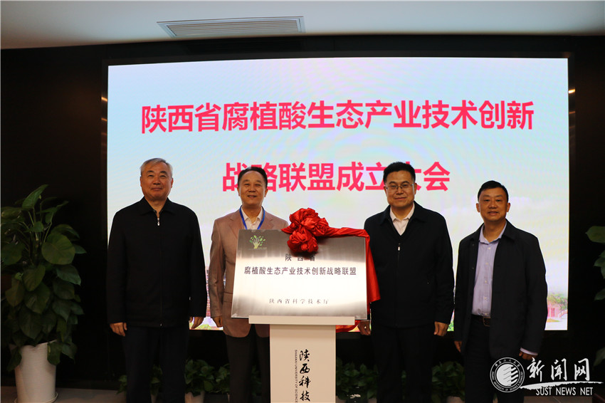 冀峰宣讀了《陜西省科學(xué)技術(shù)廳關(guān)于同意組建陜西省腐植酸生態(tài)產(chǎn)業(yè)技術(shù)創(chuàng)新戰(zhàn)略聯(lián)盟的批復(fù)》,林黎明、曾憲成、馬建中和黃劍鋒共同為聯(lián)盟成立揭牌。