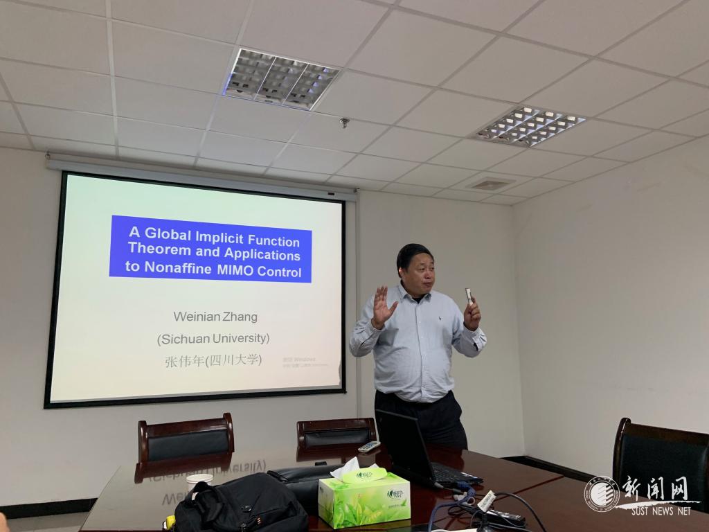 10月9日下午,應(yīng)文理學(xué)院邀請,四川大學(xué)數(shù)學(xué)學(xué)院張偉年教授作客我?!扒把乜茖W(xué)報(bào)告”,在理科樓423會議室為數(shù)學(xué)系教師代表做了題為“一個全局隱函數(shù)定理及其在非仿射MIMO控制中的應(yīng)用”的學(xué)術(shù)報(bào)告。報(bào)告會由文理學(xué)院副院長郭改慧主持。