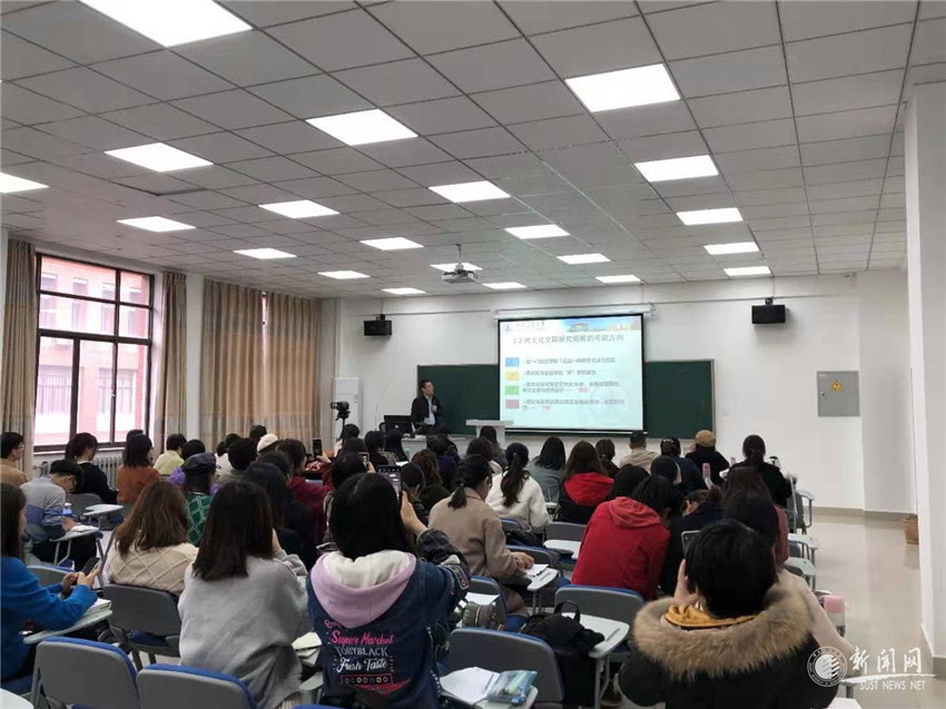 郭繼榮教授指出了跨文化交際研究拓展的可能方向,強(qiáng)調(diào)跨文化研究需回歸文化本體、忠實傳播屬性,樹立全球與世界意識,同時呼應(yīng)現(xiàn)實發(fā)展的要求,做到“頂天”和“立地”。隨后結(jié)合近年來自己的研究課題案例如陜西文化的根脈與擔(dān)當(dāng),社會文化情報研究,跨文化與“一帶一路”民心相同研究,以及大數(shù)據(jù)支持下的反恐研究等,為在場師生講述了跨文化應(yīng)用研究應(yīng)如何“跨”,向哪里“跨”。最后,呼吁師生不斷拓寬領(lǐng)域,加深認(rèn)識以不斷發(fā)展理論;反思跨文化之“道”,實踐跨文化之“術(shù)”,以道御術(shù),以術(shù)養(yǎng)道,推進(jìn)跨文化交際與傳播研究的深縱發(fā)展。