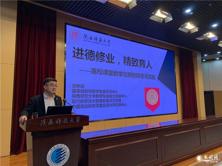 為推動教師全員參與課程理念創(chuàng)新、內(nèi)容創(chuàng)新和模式創(chuàng)新,形成打造“金課”的教學(xué)改革氛圍,加強(qiáng)一流本科課程建設(shè)與應(yīng)用,12月9日下午,教師發(fā)展中心邀請陜西師范大學(xué)衣新發(fā)教授作客我?!懊麕熣搲?,在學(xué)術(shù)報告廳為我校500余名教師作了題為《進(jìn)德修業(yè),精致育人——高校課堂教學(xué)創(chuàng)新的探索與實(shí)踐》的主題報告。報告會由教師發(fā)展中心常務(wù)副主任徐永建主持。