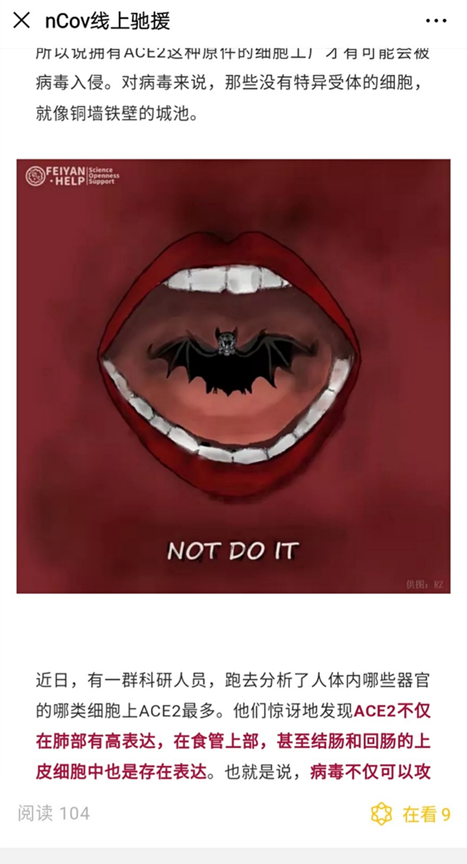 肺炎疫情發(fā)生后,環(huán)境科學與工程學院積極動員學生參與抗“疫”宣傳工作,環(huán)境171班入黨積極分子趙容嫻同學繪制了新型冠狀病毒手繪宣傳海報,發(fā)布在抖音、微博、今日頭條和bilibili等視頻網站和社交網站上,并積極參與了微信公眾號:WuHanSupport線上志愿組織,積極宣傳食用蝙蝠等野生動物的危害,為武漢加油,為中國加油,收到了眾多支持。學院其他學生也通過QQ空間和微信朋友圈等渠道普及防疫知識,宣傳抗疫正能量。