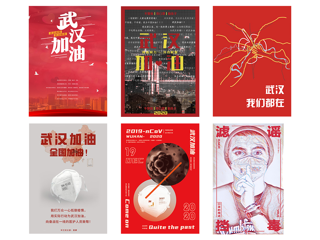 設藝學院9個本科生黨支部充分發(fā)揮設計專業(yè)特長共制作了91張“新型冠狀病毒感染肺炎疫情防控”主題海報設計作品,設計主題包含:防疫知識宣傳、致敬英雄和加油鼓勁類,密切關注疫情防控工作的點點滴滴,服務師生等。