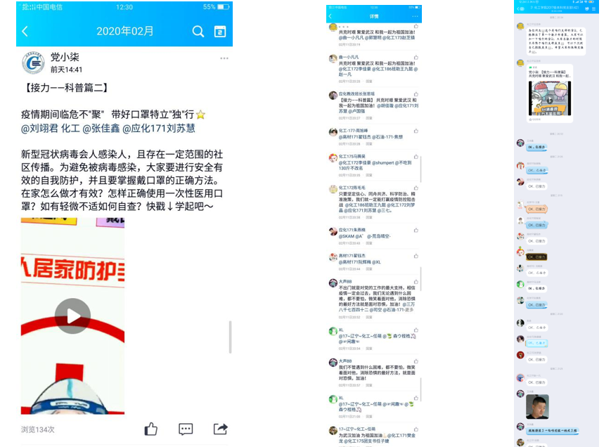 2020年春節(jié)前夕,新型冠狀病毒席卷而來,萬千黨員牽掛于心。生命重于泰山,疫情就是命令,防控就是責(zé)任。為全面貫徹習(xí)近平總書記關(guān)于疫情防控的重要講話精神,發(fā)揮黨支部戰(zhàn)斗堡壘作用,化工學(xué)院學(xué)生黨員群策群力,制定《化工學(xué)院疫情防控學(xué)生黨員工作方案》、《化工學(xué)院本科黨支部“停課不停學(xué)”工作方案》,充分發(fā)揮黨員優(yōu)勢(shì),分類別分群體進(jìn)行精準(zhǔn)幫扶,切實(shí)將“停課不停學(xué)”落到實(shí)處。