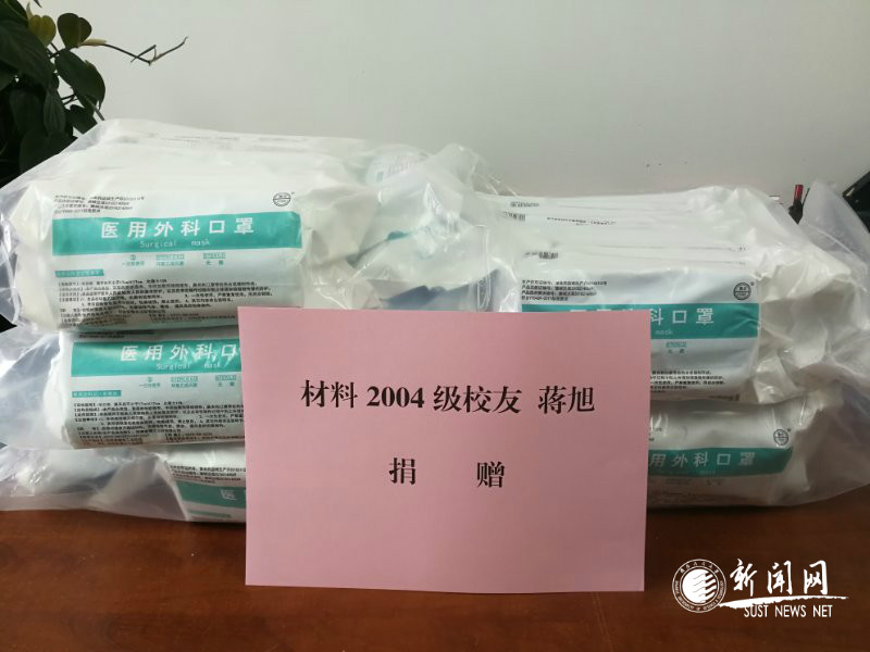 母校情、赤子心。自新型冠狀病毒肺炎疫情發(fā)生以來(lái),全國(guó)各地的科大校友心系疫情,心系母校,為抗擊新型冠狀病毒疫情出謀獻(xiàn)策,奉獻(xiàn)愛(ài)心。在當(dāng)前防疫物資緊俏難購(gòu)的情況下,近日我校材料科學(xué)與工程學(xué)院無(wú)機(jī)非金屬材料工程專業(yè)2004級(jí)校友蔣旭積極協(xié)調(diào)購(gòu)買了1000只醫(yī)用外科口罩,委托材料學(xué)院轉(zhuǎn)交給學(xué)校疫情防控工作領(lǐng)導(dǎo)小組辦公室并分發(fā)保衛(wèi)、后勤、物業(yè)等一線工作人員使用。