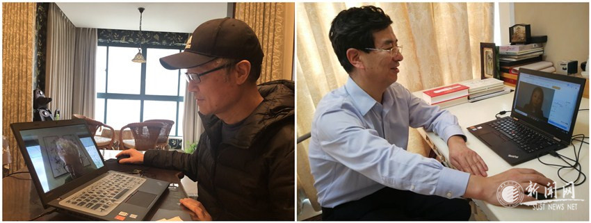 學(xué)院班子成員薛朝華教授(左一)、趙雪妮教授全程監(jiān)管線上教學(xué)運(yùn)行情況