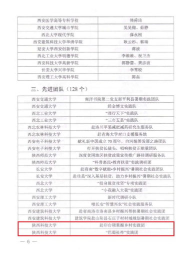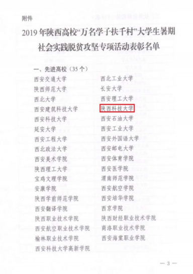 近日,中共陜西省委教育工委、共青團(tuán)陜西省委聯(lián)合發(fā)布了2019年陜西高?!叭f(wàn)名學(xué)子扶千村”大學(xué)生暑期社會(huì)實(shí)踐脫貧攻堅(jiān)專(zhuān)項(xiàng)活動(dòng)表彰通報(bào)。其中,我校榮獲“先進(jìn)高?!睒s譽(yù)稱(chēng)號(hào),設(shè)計(jì)與藝術(shù)學(xué)院任旭、經(jīng)濟(jì)與管理學(xué)院張麗麗獲評(píng)“優(yōu)秀指導(dǎo)教師”,赴印臺(tái)碩果振鄉(xiāng)村實(shí)踐團(tuán)、“巴蜀祉祚”實(shí)踐團(tuán)獲評(píng)“先進(jìn)團(tuán)隊(duì)”,李博爾、牛柳請(qǐng)、弓嘉悅?cè)麑W(xué)生獲評(píng)“優(yōu)秀學(xué)生”。