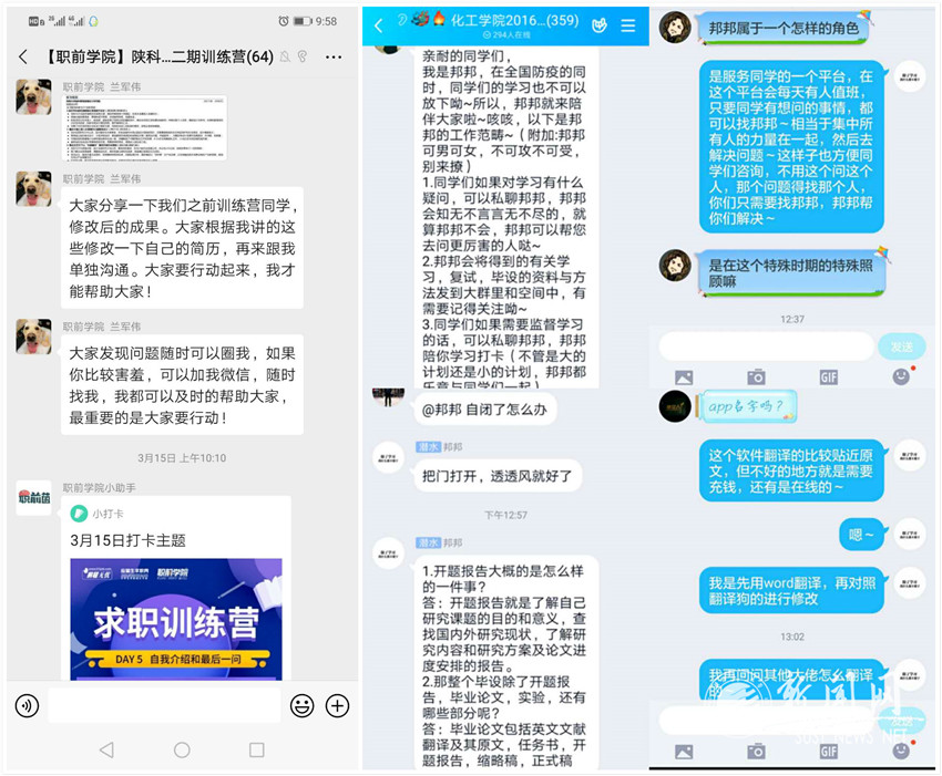 聚焦問題,強化指導。學院通過前期線上廣泛調(diào)研,了解學生需求和就業(yè)困難,結(jié)合實際建立未就業(yè)學生QQ群,邀請前程無憂、應(yīng)屆生求職網(wǎng)華西區(qū)推廣負責人蘭軍偉線上開展為期七天的求職訓練營兩期,共計100余名學生參與其中,精準指導,幫助同學們破解求職中的痛點、難點。同時,學院全體輔導員、學生黨員組成“智囊團”,搭建“邦邦”公共QQ號,充分發(fā)揮各自所長,借助網(wǎng)絡(luò)平臺在生涯規(guī)劃、企業(yè)選擇、簡歷制作、網(wǎng)絡(luò)求職技巧、禮儀等方面推出系列就業(yè)指導專題,開設(shè)“一對一”小課堂,確保疫情防控期間就業(yè)工作不斷檔、服務(wù)不掉隊,增強畢業(yè)生就業(yè)“硬實力”。