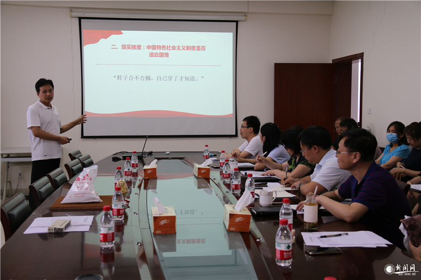 為深入學(xué)習(xí)貫徹習(xí)近平總書記關(guān)于教育的重要論述特別是在學(xué)校思想政治理論課教師座談會上的重要講話精神,7月10日下午,我校馬克思主義學(xué)院舉辦“思政課教師大練兵”現(xiàn)場教學(xué)展示活動。馬克思主義學(xué)院黨委書記劉根良、院長吳明永、院長助理孔慶金、學(xué)院教學(xué)督導(dǎo)武端利以及各教研部主任參加了教學(xué)展示活動。馬克思主義學(xué)院副院長郗芙蓉主持本次活動。