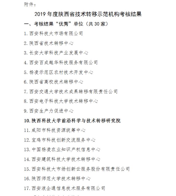 陜西省科學(xué)技術(shù)廳關(guān)于公布2019年度陜西省技術(shù)轉(zhuǎn)移示范機(jī)構(gòu)考核結(jié)果的通知:http://kjt.shaanxi.gov.cn/kjzx/tzgg/189053.html