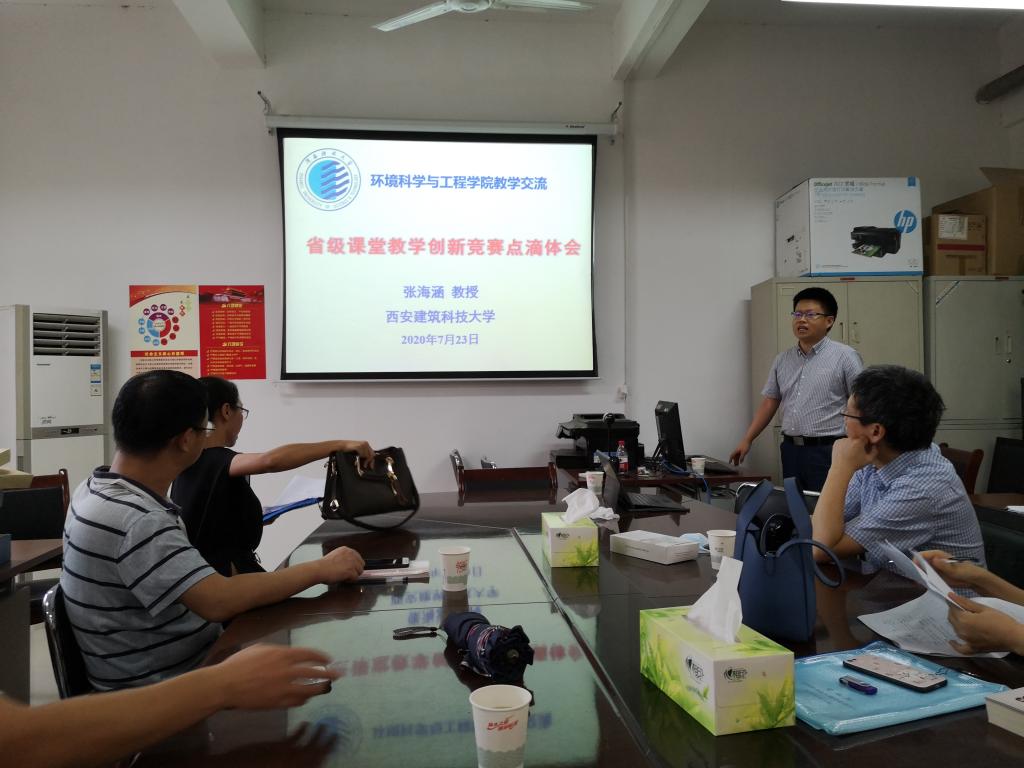 7月23日,為進(jìn)一步加強(qiáng)本科課堂創(chuàng)新和改革,將課堂思政和新工科理念融入日常教學(xué)活動(dòng),推動(dòng)學(xué)院本科教學(xué)質(zhì)量持續(xù)提升,環(huán)境學(xué)院邀請(qǐng)首屆“陜西省課堂教學(xué)創(chuàng)新大賽”一等獎(jiǎng)獲得者、西安建筑科技大學(xué)環(huán)境與市政工程學(xué)院張海涵教授等專家來(lái)校指導(dǎo)大賽準(zhǔn)備情況,分享參賽經(jīng)驗(yàn)。環(huán)境學(xué)院副院長(zhǎng)郭軍康主持會(huì)議,學(xué)院教學(xué)指導(dǎo)委員會(huì)成員和參賽青年教師代表侯銀萍、張莎、賈紅磊、王先寶等參加會(huì)議。