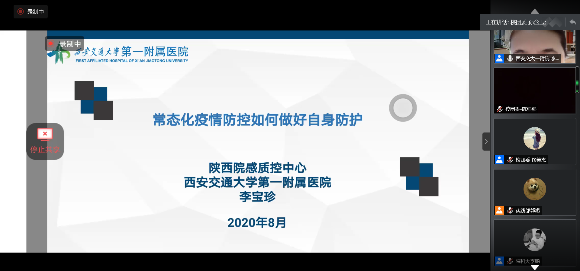 8月5日上午,我校組織開展了大學(xué)生暑期“三下鄉(xiāng)”社會(huì)實(shí)踐疫情防控與調(diào)查研究培訓(xùn)指導(dǎo)線上會(huì)議。西安交通大學(xué)第一附屬醫(yī)院感染控制辦公室主任技師李寶珍、陜西科技大學(xué)團(tuán)委書記李鵬及各學(xué)院社會(huì)實(shí)踐指導(dǎo)老師出席會(huì)議,我校2020年暑期社會(huì)實(shí)踐團(tuán)隊(duì)及個(gè)人參加會(huì)議。