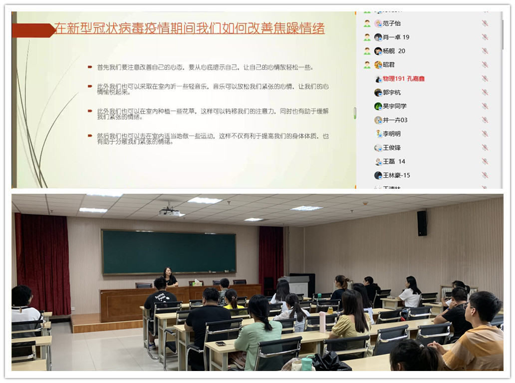 心理團輔解憂愁。暑假期間,學院精心策劃,組織實施“疫心疫意,授漁計劃”,前期通過對班級心理委員進行線上心理輔導,講授焦慮情緒緩解方法,讓班級心理委員充分發(fā)揮作用,幫助班級同學舒緩情緒;同時,對學院“桃理園成長營”幫扶團隊團輔技能進行培訓,提升心理幫扶團隊專業(yè)技能,做好同學們的“心理能量包”。學生返校后,為了緩解學生隨之而來的考試壓力,“桃理園成長營”秉承“學以致用,助人自助”的職責,面向全院學生分別舉辦學習主題團輔和壓力主題團輔,引導學生樹立正確的學習目標,有效釋放壓力、緩解情緒。對重點學生,輔導員開展一對一面對面談心談話,了解學生復(fù)學狀態(tài)。