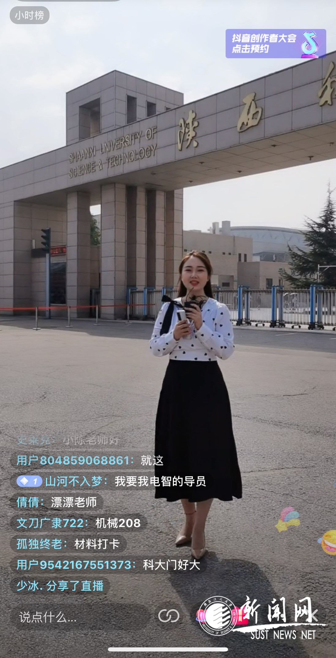 “大家好,這里是陜西科技大學(xué),歡迎大家來到‘新同學(xué),我們在科大等你’的直播間,我們是2020級新生輔導(dǎo)員,今天,由我們帶大家云游科大校園!”9月8日,由14名新生輔導(dǎo)員組成的主播團(tuán)隊(duì)帶領(lǐng)尚未入校報道的新生們在校園里“走一走,瞧一瞧”,依托“陜科大易班”抖音公眾號在直播間為大家提前開啟大學(xué)生活。
