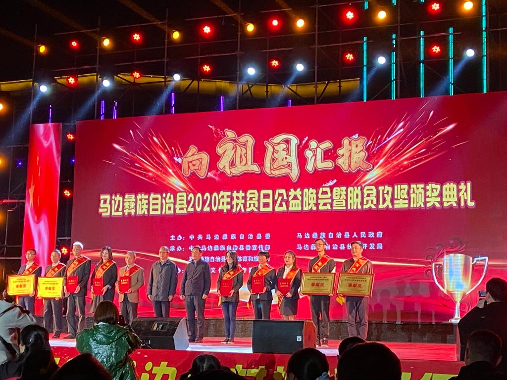 在第七個“國家扶貧日”來臨之際,10月19日晚四川省樂山市馬邊彝族自治縣在馬邊廣場舉行“2020年扶貧日公益晚會暨脫貧攻堅頒獎典禮”,全方位展示馬邊縣在過去一年脫貧攻堅工作中所取得的重大成果,并對脫貧工作中涌現(xiàn)出的先進集體和個人進行表彰。陜西科技大學研究生支教團受邀參加本次公益晚會,并榮獲由馬邊縣委和馬邊縣政府共同頒發(fā)的“2020年全縣脫貧攻堅奉獻獎”。