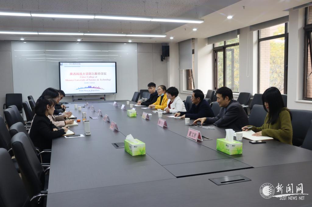 11月5日,南昌航空大學(xué)國際教育學(xué)院院長謝華、副院長張松龍、教務(wù)員伍林芳及留學(xué)生管理員黎政秀一行四人到阿爾斯特學(xué)院調(diào)研交流。副院長(主持學(xué)院行政工作)薛朝華、副院長趙雪妮及相關(guān)工作人員參加交流座談。