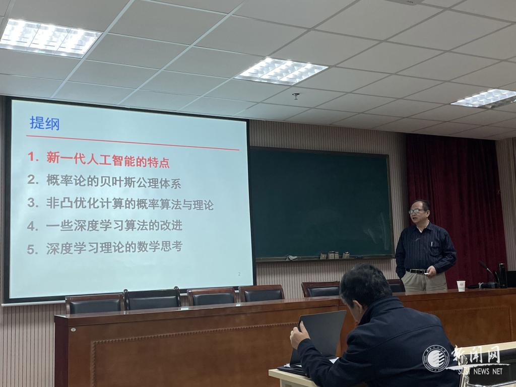 11月22日下午,應文理學院邀請,中國科學院數(shù)學與系統(tǒng)科學研究院副院長鞏馥洲研究員作客我?!扒把乜茖W報告”,在理科樓440室做了題為“新一代人工智能和概率與優(yōu)化計算”的學術(shù)報告。報告會由文理學院院長劉建科主持,數(shù)學學科學術(shù)帶頭人藺小林及數(shù)學系相關教師、研究生參加了此次報告會。