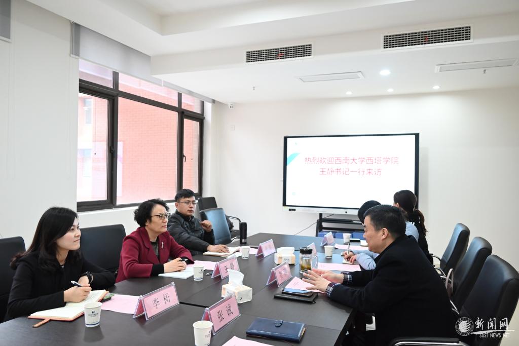 11月26日,西南大學西塔學院黨總支書記王靜、副書記張琨一行來我校阿爾斯特學院調研黨建工作。阿爾斯特學院直屬黨支部書記賀濤、院長助理魏倩茹及相關輔導員參加座談交流。