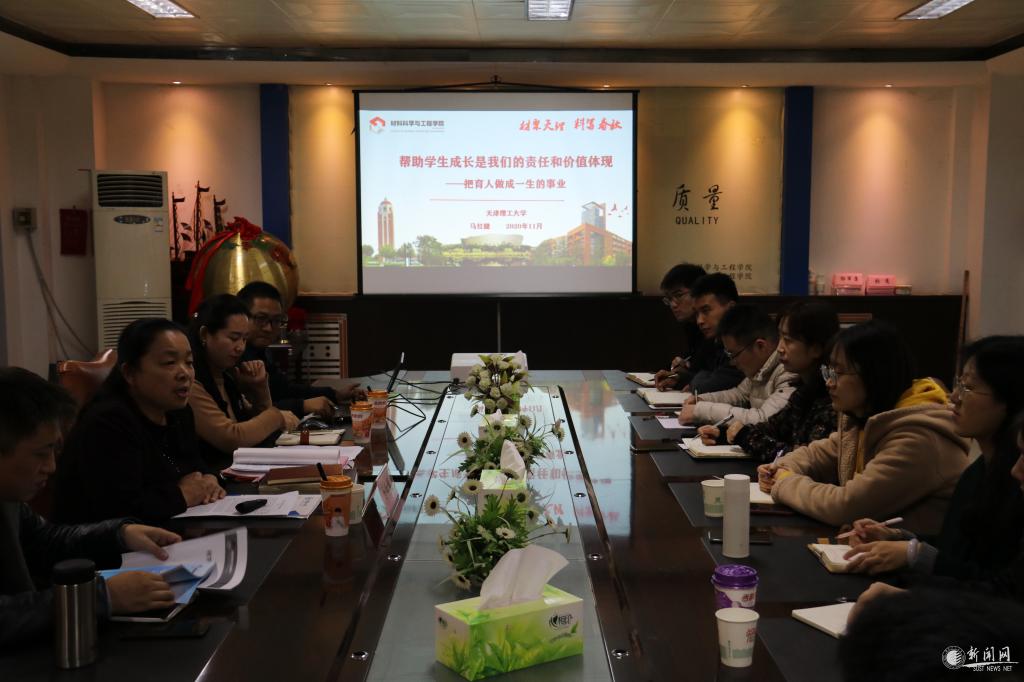 為進(jìn)一步提高輔導(dǎo)員隊(duì)伍思政工作能力,推進(jìn)輔導(dǎo)員隊(duì)伍專業(yè)化發(fā)展,提高思政工作質(zhì)量,12月2日,應(yīng)學(xué)工部、材料學(xué)院邀請全國教育系統(tǒng)先進(jìn)工作者、天津理工大學(xué)馬紅健老師來我校作了《幫助學(xué)生成長是我們的責(zé)任和價(jià)值體現(xiàn)——把育人做成一生的事業(yè)》的主題報(bào)告。材料、環(huán)境、教育學(xué)院學(xué)生工作負(fù)責(zé)人,輔導(dǎo)員學(xué)業(yè)指導(dǎo)團(tuán)隊(duì)全體成員參加了報(bào)告會(huì)。
