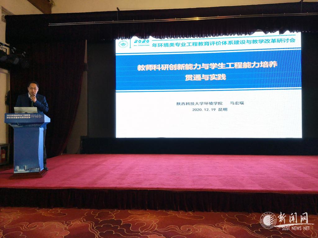 12月19日至21日,由中國環(huán)境科學(xué)學(xué)會聯(lián)合教育部高等學(xué)校環(huán)境科學(xué)與工程類專業(yè)教學(xué)指導(dǎo)委員會主辦的2020年環(huán)境類專業(yè)工程教育評價體系建設(shè)與教學(xué)改革研討會在云南昆明召開。中國科學(xué)院院士郝吉明、中國工程院院士任南琪、環(huán)境教指委副主任朱彤教授,環(huán)境類專業(yè)認(rèn)證委員會副主任委員周琪教授等環(huán)境領(lǐng)域資深專家受邀參加了此次研討會。我校環(huán)境學(xué)院院長馬宏瑞教授、副院長郭軍康教授帶領(lǐng)學(xué)院骨干教師參加此次研討會并作主題報告。