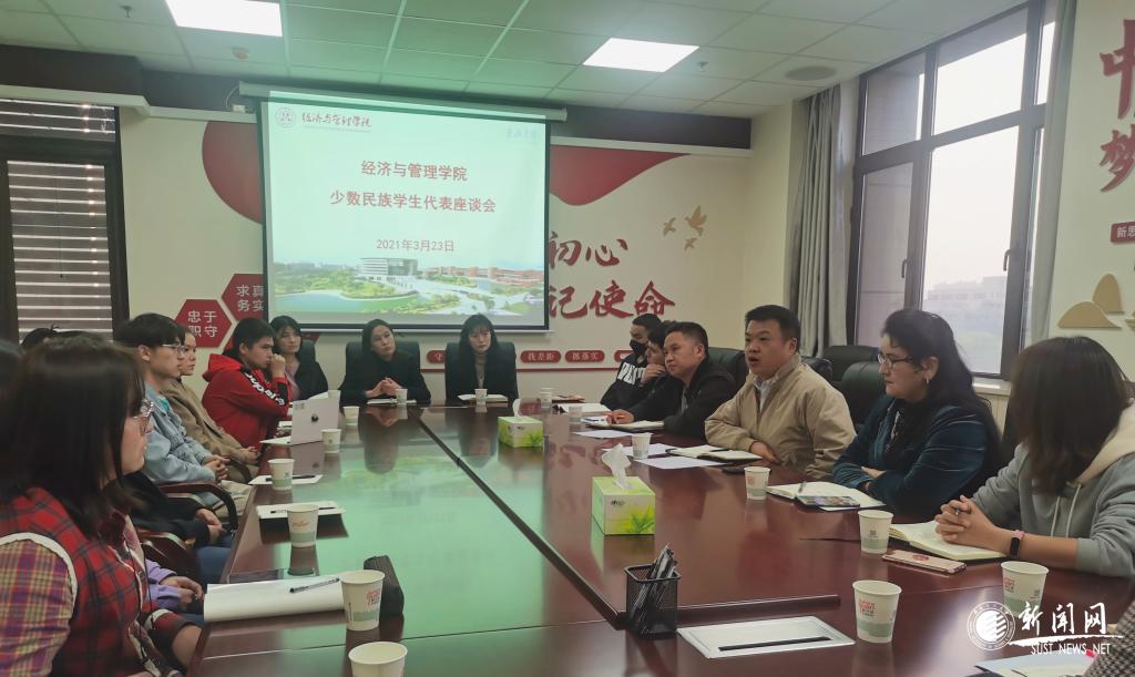 為更好地傾聽我院少數(shù)民族學(xué)生的心聲,全面了解學(xué)生的學(xué)習(xí)、生活情況,不斷強(qiáng)化學(xué)院服務(wù)育人的針對性與實(shí)效性,3月23日下午,經(jīng)管學(xué)院在人文樓A415會議室召開少數(shù)民族學(xué)生代表座談會。學(xué)院黨委書記崔楠、新疆內(nèi)派教師、少數(shù)民族專職輔導(dǎo)員、各年級輔導(dǎo)員代表及各年級少數(shù)民族學(xué)生代表共計(jì)19人參加。會議由學(xué)院黨委副書記陶興旺主持。