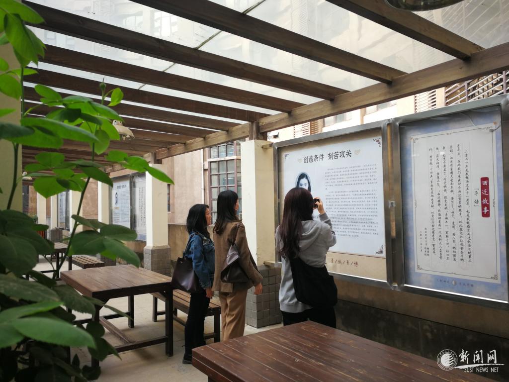 本次展覽由楊宗邃、魏世林、劉昌祺、張啟恭、許淑惠、王金海等六位西遷前輩的故事組成。展覽現場,六位西遷前輩的照片和事跡環(huán)繞中心花園,在學生的朗朗讀書聲和綠植的生機勃勃中展開。展覽中一張張質樸的臉龐,一個個動人的故事,瞬間吸引了師生讀者的目光,每一位西遷親歷者將他們西遷創(chuàng)業(yè)、傳承西遷精神的故事娓娓道來,讓前來參觀的師生感慨萬千。