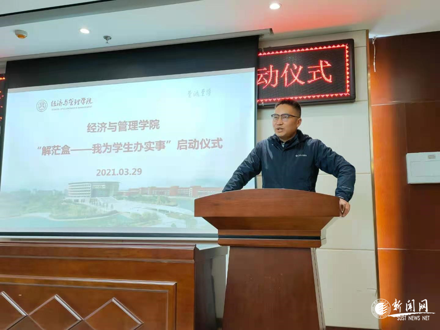 為踐行“一切以學(xué)生為中心”的工作宗旨,進(jìn)一步深化經(jīng)管學(xué)院“一體兩翼”的學(xué)生工作模式,引導(dǎo)全院學(xué)生堅(jiān)定理想信念,厚植愛(ài)國(guó)情懷,以實(shí)際行動(dòng)慶祝建黨一百周年,3月29日,經(jīng)濟(jì)與管理學(xué)院在人文樓召開(kāi)了“解茫盒——我為學(xué)生辦實(shí)事”工作啟動(dòng)儀式。學(xué)院黨委副書(shū)記陶興旺、團(tuán)委書(shū)記劉育濤、全體輔導(dǎo)員以及全院學(xué)生組織骨干、各班級(jí)代表參加此次活動(dòng)。啟動(dòng)儀式由輔導(dǎo)員楊亞倩主持。