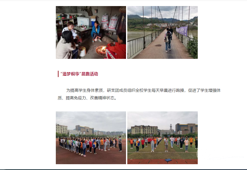 傳承接力,不辱使命,為留守兒童播種希望。2019年,陜西科技大學(xué)研支團(tuán)首次走出省外,來到深度貧困的小涼山彝區(qū),了解到當(dāng)?shù)亓羰貎和姸嗟那闆r后,開辦了暑期“飛翔”夏令營,為這座西南彝族小城帶來了新的教學(xué)嘗試。2020年,陜科大第22屆研支團(tuán)接過接力棒,繼續(xù)在馬邊開展支教服務(wù),先后舉辦“飛翔”夏令營2.0、“心靈護(hù)航”“家校聯(lián)動(dòng)”、“追夢(mèng)桐華”等品牌活動(dòng)。通過支教團(tuán)成員的精心組織,留守兒童在學(xué)習(xí)與游戲中收獲了知識(shí)、友情與陪伴,家長得以放心在外務(wù)工,為當(dāng)?shù)孛撠毠?jiān)貢獻(xiàn)力量。