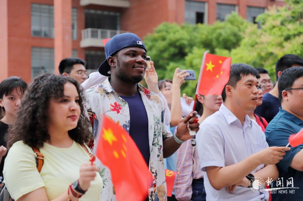 快閃活動由歌伴舞《在燦爛陽光下》、說唱《破浪》以及師生合唱《沒有共產(chǎn)黨就沒有新中國》三部分組成,紅歌聯(lián)唱、民舞、街舞、Rap、樂器演奏等將現(xiàn)場氣氛不斷推向高潮。師生共同演繹紅色歌曲,激發(fā)了青年學(xué)子們砥礪奮進(jìn)的熱情。本次活動特別邀請了外國留學(xué)生共同參與,加強(qiáng)了中外學(xué)生交流互動,有力展示了黨領(lǐng)導(dǎo)下中國青年自信開放的精神風(fēng)貌。
