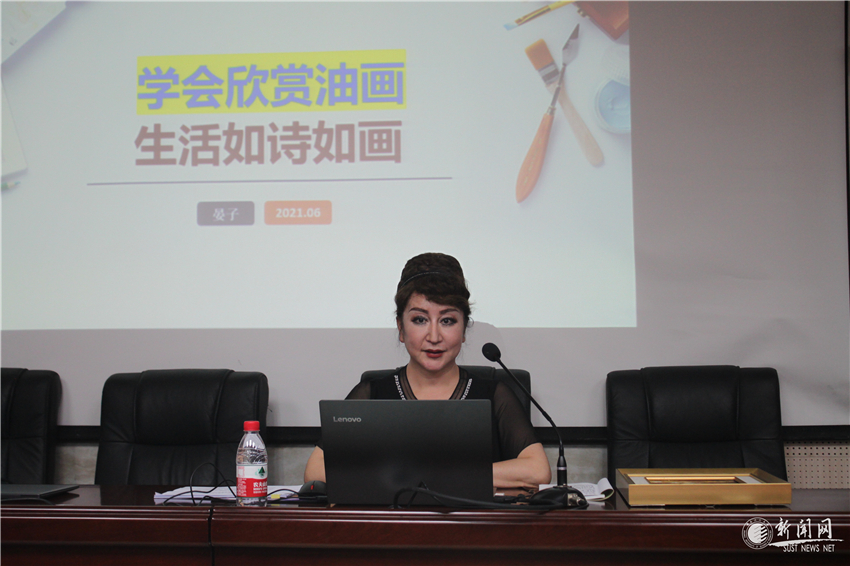 晏子教授從構(gòu)圖、內(nèi)容、色彩、筆觸等方面入手,結(jié)合具體的油畫作品賞析,講解了油畫的魅力、特征,引導(dǎo)同學(xué)們?nèi)绾稳バ蕾p油畫、如何看懂西方油畫,講解了學(xué)會(huì)欣賞油畫的益處,帶領(lǐng)同學(xué)們走進(jìn)了一個(gè)油畫藝術(shù)的世界,共同感受和學(xué)習(xí)油畫藝術(shù)的獨(dú)特魅力和文化內(nèi)涵。