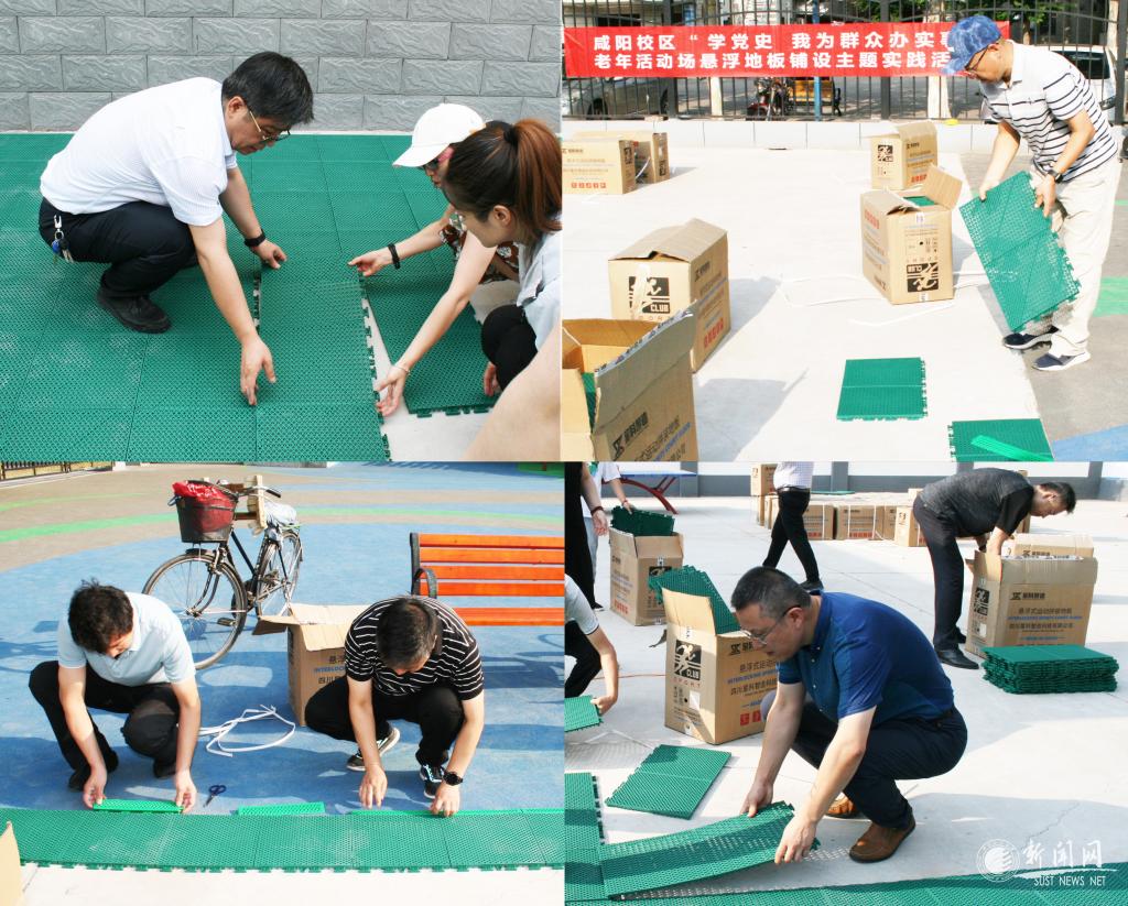 咸陽校區(qū)管委會心系群眾所盼,主動籌資購買運(yùn)動場專用的塑料懸浮地板,并組織全體黨員義務(wù)鋪設(shè)安裝。7月8日上午,冒著酷暑和驕陽的炙烤,咸陽校區(qū)管委會班子成員身先士卒,熱情地奮戰(zhàn)鋪設(shè)工作第一線,有的組織人員放線標(biāo)定位置,有的拿起地板仔細(xì)拼裝,有的奮力搬運(yùn)材料,工作現(xiàn)場一片熱火朝天。大家在汗流浹背中感受勞動的艱辛和為人民服務(wù)的快樂,用實(shí)際行動踐行我黨艱苦奮斗、節(jié)儉樸素的光榮傳統(tǒng)和優(yōu)良作風(fēng)。經(jīng)過2個多小時的辛勤工作,鋪設(shè)懸浮地板工作圓滿完成,為單位節(jié)省鋪設(shè)工費(fèi)3000多元。