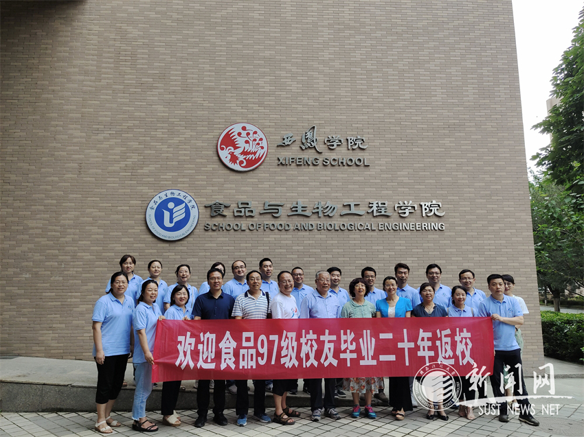 在歡慶中國(guó)共產(chǎn)黨建黨百年之際,食品與生物工程學(xué)院食品97級(jí)20多位校友重聚母校,共敘同窗情、感念師長(zhǎng)恩。7月10日上午,校友回到闊別許久的咸陽校區(qū),尋跡二十年前學(xué)習(xí)生活的場(chǎng)所,中心樓、生機(jī)雕塑、圖書館馬賽克壁畫、田徑場(chǎng),都喚起了校友記憶里最深刻的烙印,每到一處,大家都興致勃勃地拍照留念,回憶青蔥歲月。