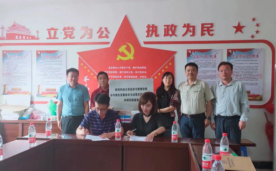 在座談會(huì)上,蘇芳代表團(tuán)隊(duì)與王石凹村簽署戰(zhàn)略合作協(xié)議,掛牌成立“鄉(xiāng)村綠色發(fā)展技術(shù)與決策支持創(chuàng)新團(tuán)隊(duì)科研實(shí)踐基地”。