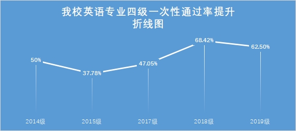 2021年英語專業(yè)四級(jí)考試成績揭曉,我校英語專業(yè)2018級(jí)和2019級(jí)四級(jí)一次性通過率分別達(dá)到68.42%和62.50%,比2021年全國綜合性院校專四平均通過率(54.57%)分別高出13.85和7.93個(gè)百分點(diǎn),與本校英語專業(yè)2017級(jí)一次性通過率(47.05%)相比,分別提高21個(gè)和15個(gè)百分點(diǎn)。五年來英語專業(yè)四級(jí)一次性通過率大幅度提升。